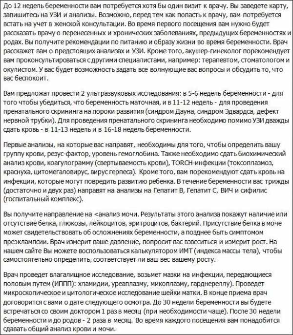 Необязательно на 5 неделе беременности бежать к гинекологу, если вас ничего не беспокоит, вы прекрасно себя чувствуете. Стать можно на учет, начиная с 12 недели, но если вы чего остерегаетесь, можете это сделать раньше. Соответственно и анализы будете сдавать раньше. Каждая женщина сдает общий анализ мочи, общий анализ крови, анализы на гормоны, на свертывание крови и многие другие анализы.