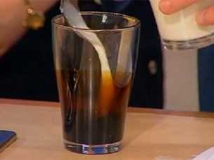 На стакан домашнего молока, пол чайной ложки березового дегтя, размешать.