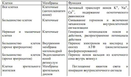 В табл. 4 перечислены функции цитоплазматических и некоторых внутриклеточных мембран.