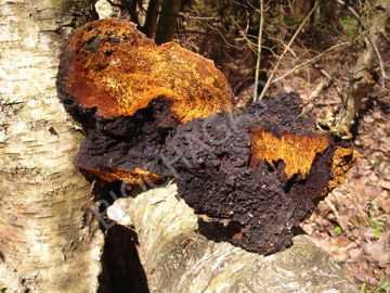Другие названия: чага, черный березовый гриб, трутовик косотрубчатый.
