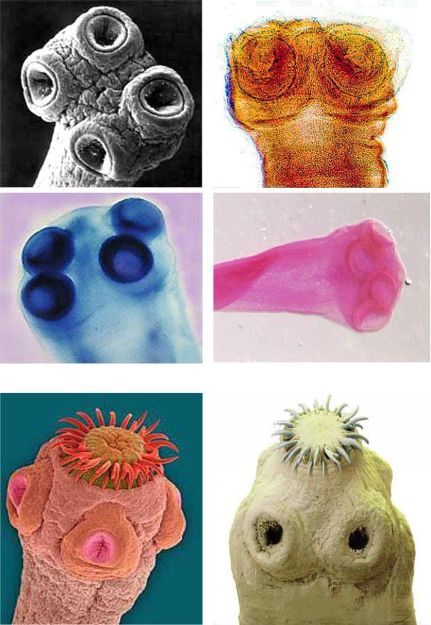 Тело ленточного червя состоит из членников, общее число которых колеблется от 3 до 5000. Главный элемент фиксации гельминта — головка, дополнительные — присоски, крючья.