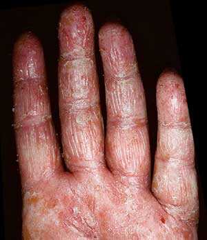 Сходила к дерматологу, поставили экзему во всей красе...с зудом, шелушением, трещинами, мокнутием и болью.