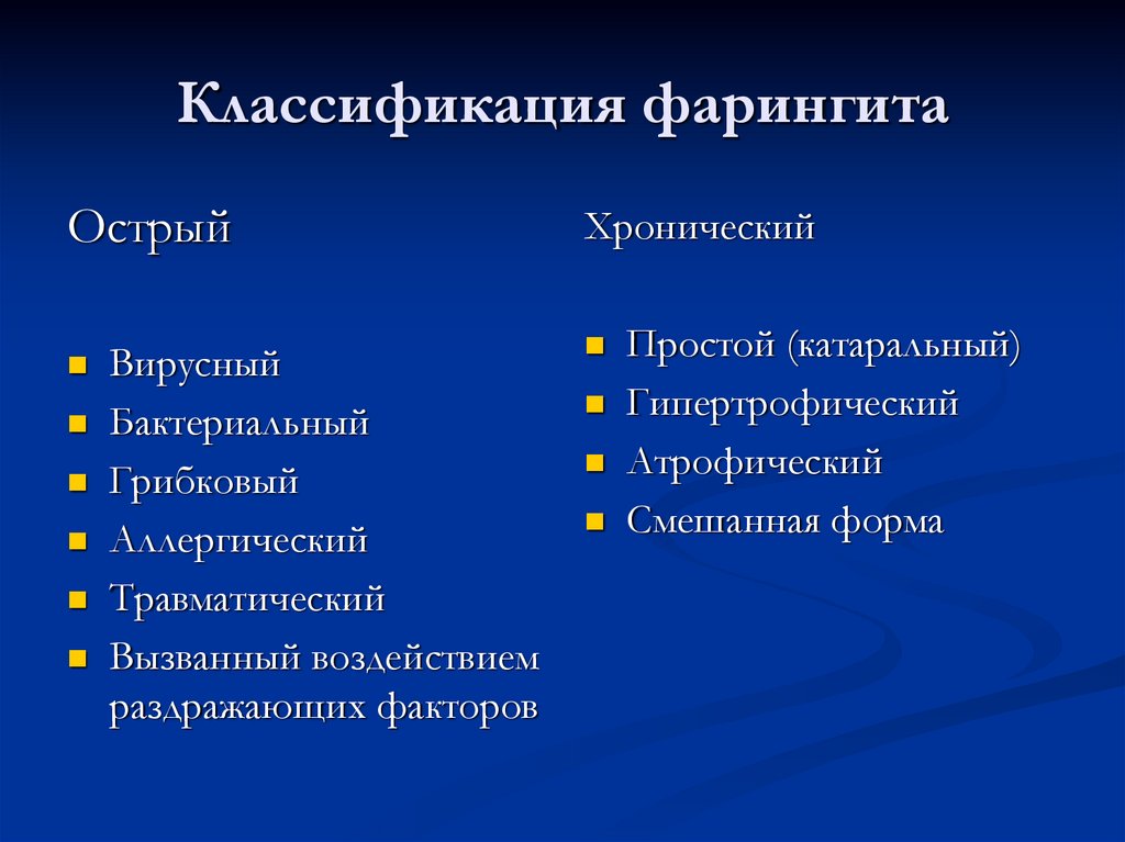 Виды фарингита