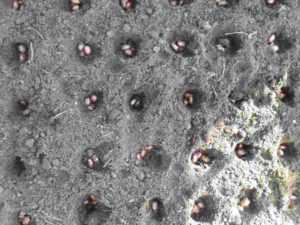 Мало кто сразу сажает семена в грунт. Обычно для посадки подготавливают рассаду. Для этого берутся самые обыкновенные горшки, в которые насыпается небольшое количество земли. В неё, примерно на 2 см в глубину, закладывают семя. Горшки держат только в тёплом помещении, на солнечной стороне. Полив производится регулярный, заливать почву не следует. Уже через неделю начнут появляться первые всходы. Затем рекомендуют убрать пинцетом кожуру с семени. Она может спровоцировать гниение.