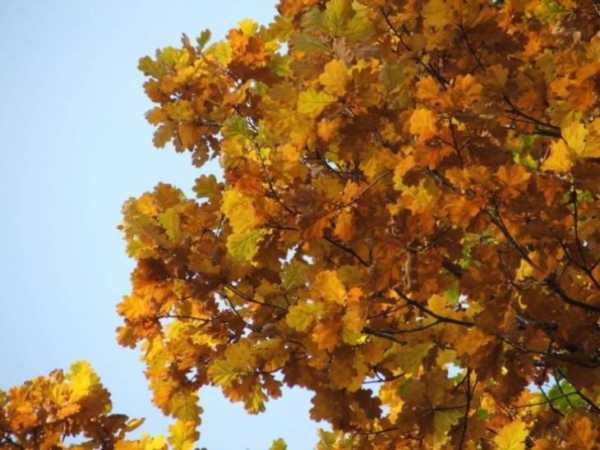 - Посмотрите, как изменяется цвет листиков в осеннее время. Некоторые разновидности дуба меняют цвет на золотистый, некоторые — на красный, а вечнозеленые растения вообще не меняют цвет на протяжении 2-3 лет.