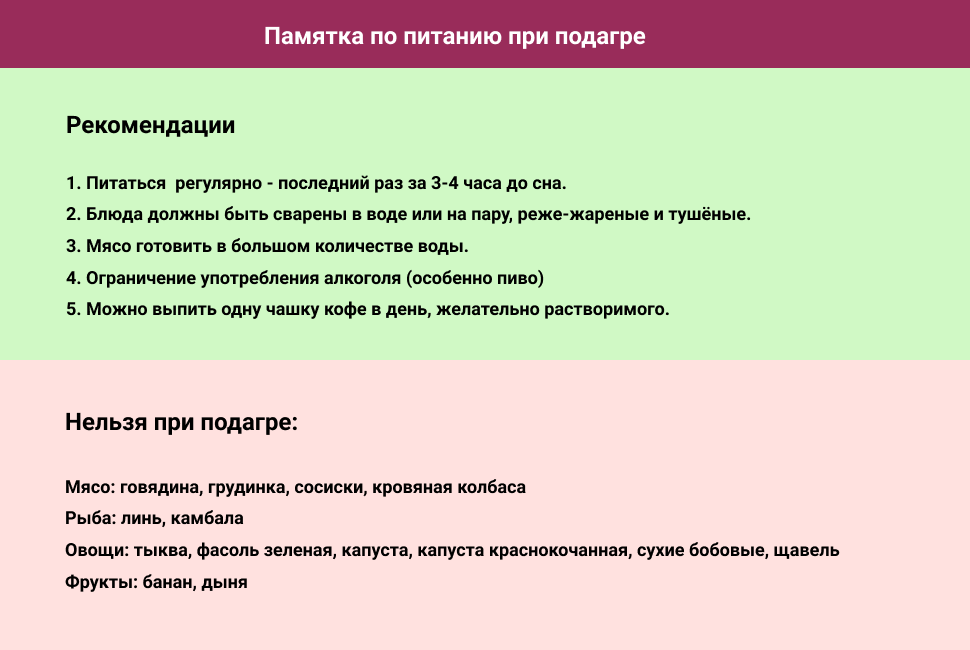 Основные принципы питания при подагре и повышенной мочевой кислоте