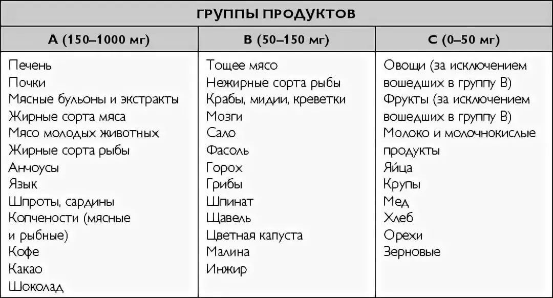 Некоторые примеры продуктов, богатых пуринами, которых следует избегать, включают:
