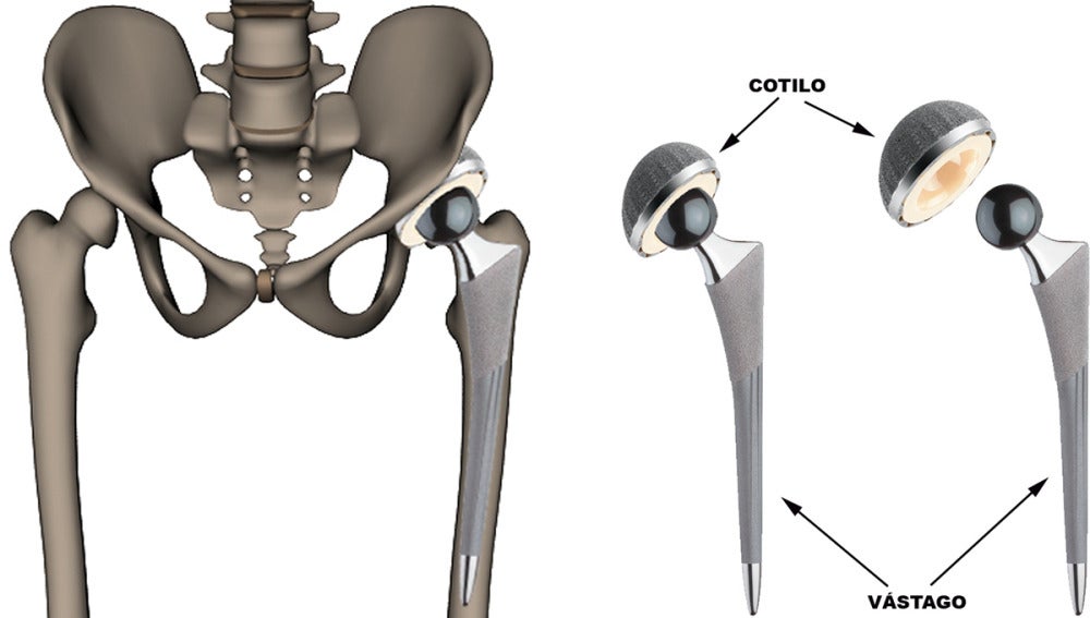 Керамический или металлический шар прикреплен к металлическому стержню. Это называется тазобедренный имплантат. Стержень устанавливается в сердцевину бедренной кости (бедренной кости). Он прочно фиксируется в бедренной кости одним из двух способов: