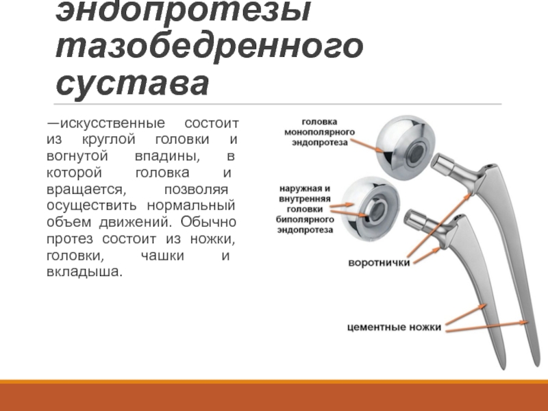 Все эндопротезы тазобедренного сустава состоят из трех частей:
