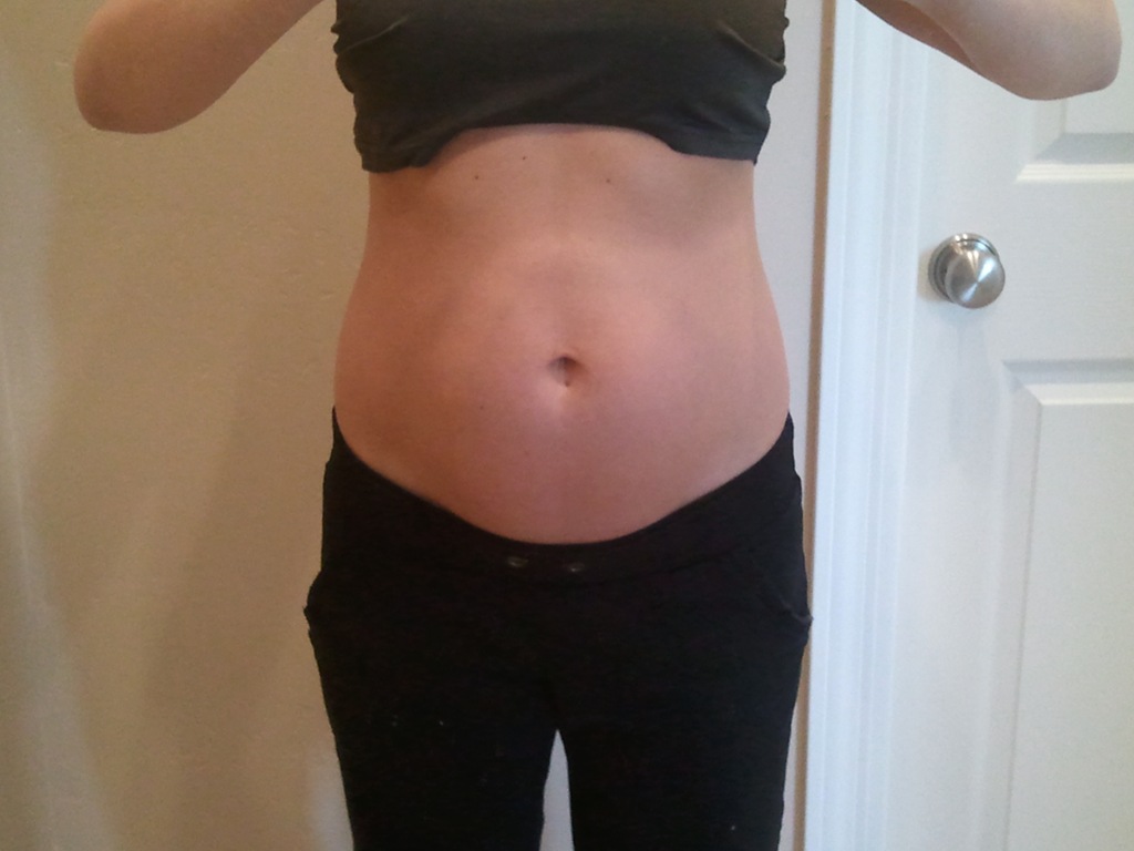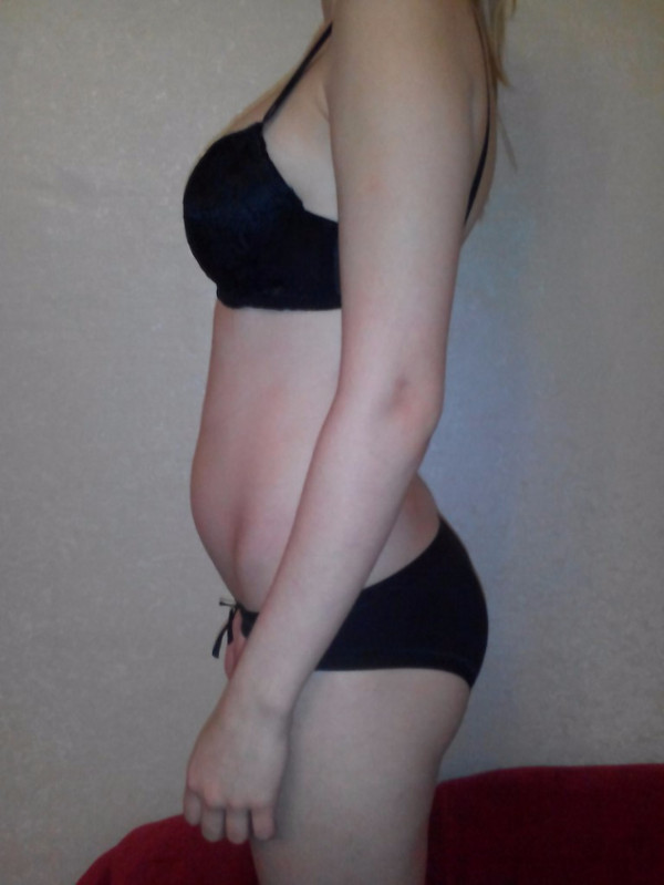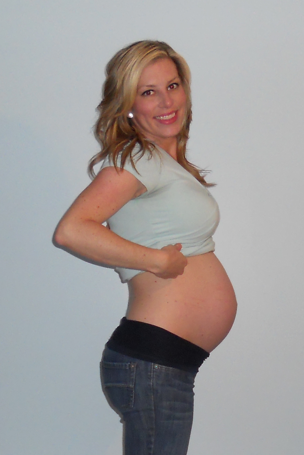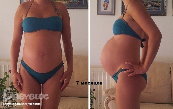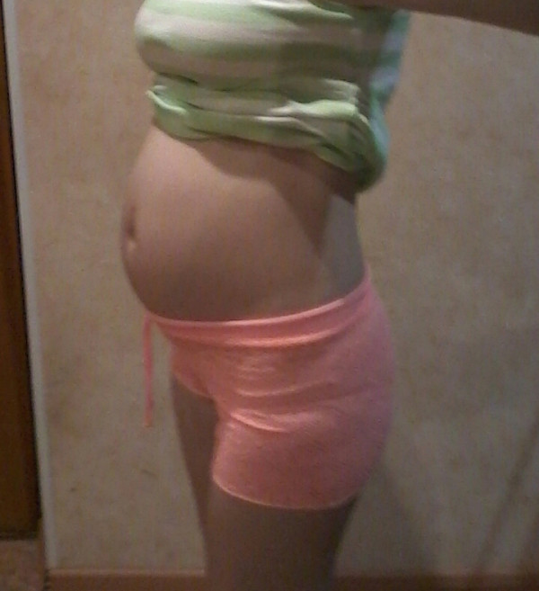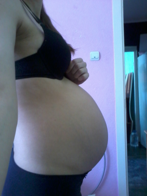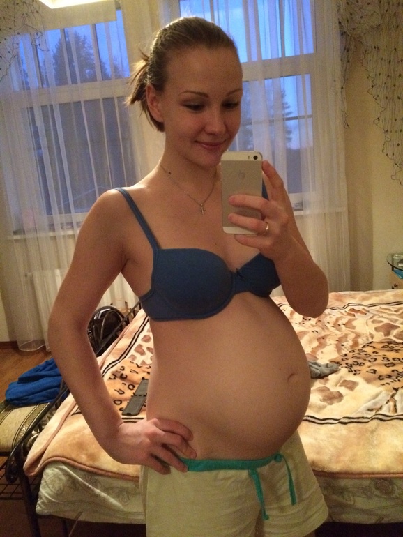 Ваш живот растет, и грудь не отстает. Вам все сложнее взглянуть на свои колени, пупок стал выпуклым, а расстояние между грудью и животом сильно уменьшилось.