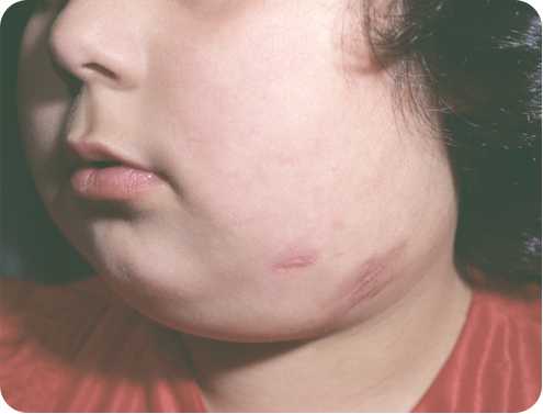 Подкожную гранулему очень сложно отличить от поверхностного лимфаденита околоушно- жевательной области. Признаки поверхностного лимфаденита – площадь пораженной кожи меньше инфильтрата подлежащих тканей, при этом глубина значительно больше.