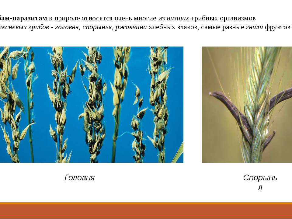 Грибы-паразиты вредят сельскому хозяйству. Они снижают урожайность сельскохозяйственных культур. Борьба с ними требует больших материальных затрат.