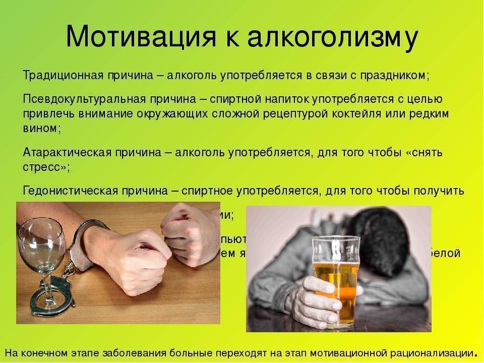Причиной алкоголизма могут быть сложности с адаптацией к жизненным обстоятельствам, слабость воли, отсутствие уверенности в своих силах. Нередко причиной проблем становится склонность к депрессивным состояниям и личные проблемы. - Социальные факторы. Отрицательное воздействие рекламы, национальные традиции, семейные привычки, отсутствие хорошей работы могут подтолкнуть человека к злоупотреблению спиртным.
