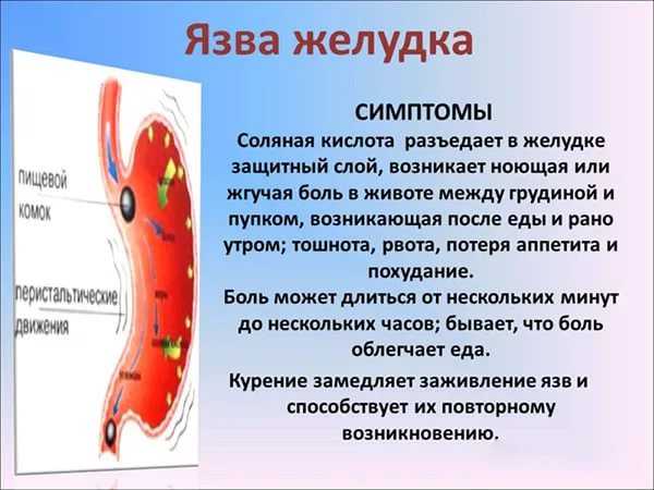 Иногда после успешного лечения язва «открывается» повторно, даже если человек делал все, чтобы это предотвратить. Однако особенно рискуют курящие, любители алкоголя, а также те, кто продолжает принимать нестероидные противовоспалительные препараты. В случае появления тупой или жгучей боли в верхней части живота необходимо как можно скорее пройти диагностику.