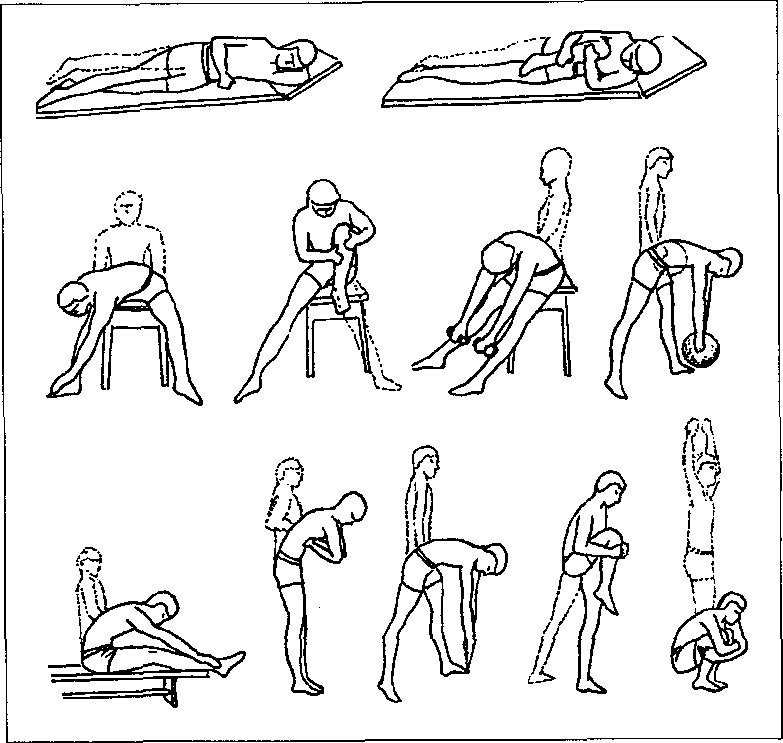 За выполнением этого упражнения должен следить медицинский работник, чтобы больной не упал;