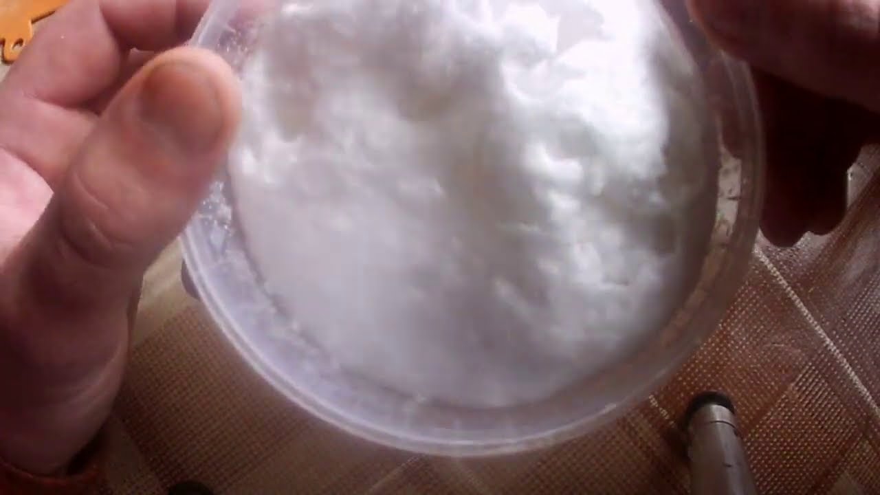 - Поместите хлопья хлорида магния в стеклянную миску или мерный стакан и залейте их кипятком.