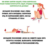Удержать напряжение 5 секунд, расслабится и повторить 10 раз.