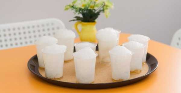 - В 300 мл стакан налить базовую жидкость (сок, сироп и т. д.).