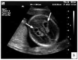 Π‘ΠΎΡΡΠ΄ΠΈΡΡΡΠ΅ ΡΠΏΠ»Π΅ΡΠ΅Π½ΠΈΡ Ρ ΠΏΠ»ΠΎΠ΄Π° ΠΎΠ±ΡΠ°Π·ΡΡΡΡΡ Π½Π° ΡΡΠΎΠΊΠ΅ 18-19 Π½Π΅Π΄Π΅Π»Ρ. ΠΠΌΠ΅Π½Π½ΠΎ Π² ΡΡΠΎΡ ΠΏΠ΅ΡΠΈΠΎΠ΄, ΠΏΡΠΈ ΠΏΡΠΎΠ²Π΅Π΄Π΅Π½ΠΈΠΈ Π£ΠΠ ΠΌΠΎΠ³ΡΡ Π±ΡΡΡ ΠΎΠ±Π½Π°ΡΡΠΆΠ΅Π½Ρ ΠΏΠ΅ΡΠ²ΡΠ΅ ΠΏΡΠΈΠ·Π½Π°ΠΊΠΈ ΠΊΠΈΡΡ, ΠΊΠΎΡΠΎΡΡΠ΅ Π²ΡΠ³Π»ΡΠ΄ΡΡ, ΠΊΠ°ΠΊ ΡΡ ΠΎΠ½Π΅Π³Π°ΡΠΈΠ²Π½ΡΠ΅ ΠΎΠ±ΡΠ°Π·ΠΎΠ²Π°Π½ΠΈΡ. Π§Π°ΡΠ΅ Π²ΡΠ΅Π³ΠΎ Π² ΡΡΠΎΠΊ ΠΎΡ 20 Π΄ΠΎ 24 Π½Π΅Π΄Π΅Π»Ρ, ΠΊΠΎΠ³Π΄Π° ΠΈΠ΄Π΅Ρ Π°ΠΊΡΠΈΠ²Π½ΠΎΠ΅ ΡΠΎΡΠΌΠΈΡΠΎΠ²Π°Π½ΠΈΠ΅ Π³ΠΎΠ»ΠΎΠ²Π½ΠΎΠ³ΠΎ ΠΌΠΎΠ·Π³Π°, ΡΠ°Π·ΠΌΠ΅Ρ ΠΊΠΈΡΡΡ ΡΠΌΠ΅Π½ΡΡΠ°Π΅ΡΡΡ, ΠΈ ΠΎΠ½Π° ΠΏΠΎΠ»Π½ΠΎΡΡΡΡ ΠΈΡΡΠ΅Π·Π°Π΅Ρ.