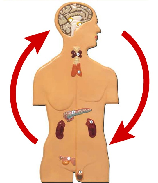 Эндокринная система организма включает поджелудочную железу, щитовидную железу, паращитовидную железу, шишковидную железу, гипоталамус, надпочечники и гипофиз, а также яичники и семенники. Он также затрагивает многие другие органы, которые реагируют на гормоны, изменяют их или метаболизируют.