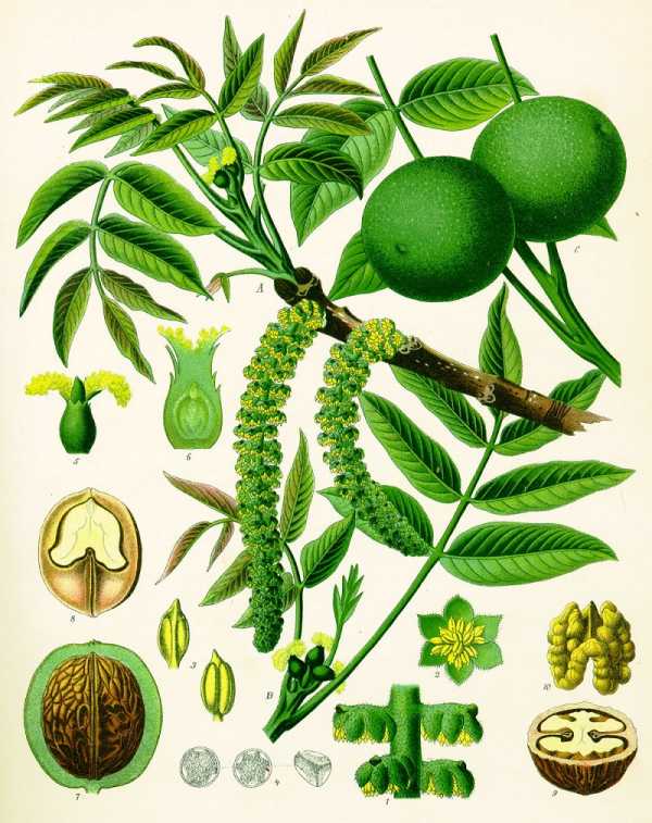 Листья грецкого ореха: лечебные свойства при заболеваниях кожи, рецепты использования