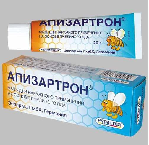 Мазь Апизартрон — одна из самых популярных разогревающих мазей. Обладает сильным запахом.