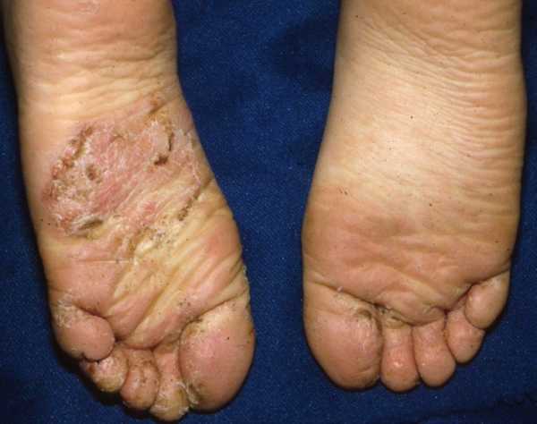 Минимальность признаков делает этот вариант заболевания коварным. Люди склонны полагать, что шелушение стопной кожи и небольшая сыпь на ногах – норма, а промежутки между пальцами, которые разъедены – лишь старческая опрелость. По итогу болезнь остается не леченной, перерастая в более серьезные патологии.