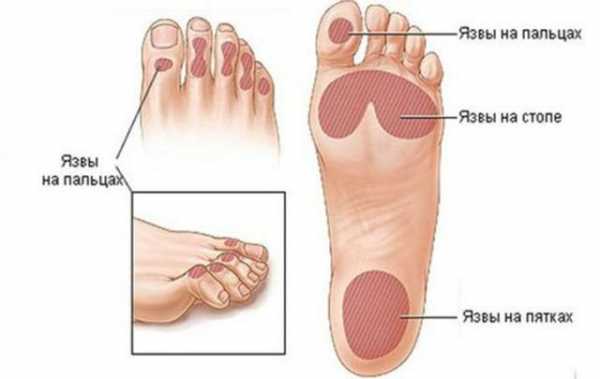 ΠΡΠΈΡΠΈΠ½Π°ΠΌΠΈ ΡΠ°Π·Π²ΠΈΡΠΈΡ Π΄ΠΈΠ°Π±Π΅ΡΠΈΡΠ΅ΡΠΊΠΈΡ ΡΠ·Π² Π² 33 % ΡΠ»ΡΡΠ°Π΅Π² ΡΠ²Π»ΡΠ΅ΡΡΡ Π½ΠΎΡΠ΅Π½ΠΈΠ΅ Π½Π΅ΠΏΠΎΠ΄Ρ ΠΎΠ΄ΡΡΠ΅ΠΉ ΠΎΠ±ΡΠ²ΠΈ, Π² 16 % β ΡΡΠ°Π²ΠΌΡ ΡΡΠΎΠΏΡ, Π² 13 % ΡΡΠΎΠ»ΡΠ΅Π½ΠΈΠ΅ ΡΠΏΠΈΠ΄Π΅ΡΠΌΠΈΡΠ° ΠΊΠΎΠΆΠΈ ΡΡΠΎΠΏΡ.