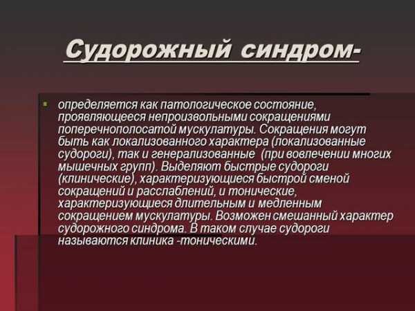 Π’Π°ΠΊΠΈΠΌ ΠΎΠ±ΡΠ°Π·ΠΎΠΌ, ΠΎΠΏΠ°ΡΠ½Ρ ΠΌΡΡΠ΅ΡΠ½ΡΠ΅ ΡΡΠ΄ΠΎΡΠΎΠ³ΠΈ ΡΠΎΠ³Π΄Π°, Π΅ΡΠ»ΠΈ Π½Π°ΡΠΈΠ½Π°ΡΡ ΡΠΎΠΊΡΠ°ΡΠ°ΡΡΡΡ Π²ΡΠ΅ ΠΌΡΡΡΡ ΡΡΠ°Π·Ρ, Π² Π΄Π°Π½Π½ΠΎΠΉ ΡΠΈΡΡΠ°ΡΠΈΠΈ ΠΎΠ½ΠΈ Π³Π΅ΡΠ΅Π½Π΅ΡΠ°Π»ΠΈΠ·ΠΎΠ²Π°Π½Π½ΡΠ΅, ΡΠ΅Π»ΠΎΠ²Π΅ΠΊ ΠΌΠΎΠΆΠ΅Ρ ΠΏΠΎΡΠ΅ΡΡΡΡ ΡΠΎΠ·Π½Π°Π½ΠΈΠ΅. Π‘ΠΏΠ°Π·ΠΌ Π²ΠΎΠ·Π½ΠΈΠΊΠ°Π΅Ρ ΠΈΠ·-Π·Π° ΡΡΠΆΠ΅Π»ΠΎΠ³ΠΎ Π·Π°Π±ΠΎΠ»Π΅Π²Π°Π½ΠΈΡ, Π΅Π³ΠΎ Π½ΡΠΆΠ½ΠΎ ΡΡΠΎΡΠ½ΠΎ Π»Π΅ΡΠΈΡΡ. Π§Π°ΡΠ΅ Π²ΡΠ΅Π³ΠΎ ΡΠΈΠΌΠΏΡΠΎΠΌΠ°ΡΠΈΠΊΠ° Π±Π΅ΡΠΏΠΎΠΊΠΎΠΈΡ, ΠΊΠΎΠ³Π΄Π° ΡΠ΅Π»ΠΎΠ²Π΅ΠΊΡ Π½Π΅ Ρ Π²Π°ΡΠ°Π΅Ρ ΠΌΠ°Π³Π½ΠΈΡ, ΠΊΠ°Π»ΡΡΠΈΡ, ΡΠ°ΠΊΠΎΠ΅ ΠΏΡΠΎΠΈΡΡ ΠΎΠ΄ΠΈΡ Π²ΠΎ Π²ΡΠ΅ΠΌΡ Π±Π΅ΡΠ΅ΠΌΠ΅Π½Π½ΠΎΡΡΠΈ, Π΅ΡΠ»ΠΈ ΡΠ΅Π»ΠΎΠ²Π΅ΠΊ Π·Π»ΠΎΡΠΏΠΎΡΡΠ΅Π±Π»ΡΠ΅Ρ ΠΏΡΠΎΡΠ΅ΠΈΠ½Π°ΠΌΠΈ, ΠΏΡΠΈ Π΄Π΅ΡΠΈΡΠΈΡΠ΅ Π²ΠΈΡΠ°ΠΌΠΈΠ½Π° D, ΠΏΠ΅ΡΠ΅ΠΎΡ Π»Π°ΠΆΠ΄Π΅Π½ΠΈΠΈ, ΠΏΡΠΈ ΡΡΠ΅Π·ΠΌΠ΅ΡΠ½ΡΡ ΡΠΈΠ·ΠΈΡΠ΅ΡΠΊΠΈΡ Π½Π°Π³ΡΡΠ·ΠΊΠ°Ρ , Π·Π°Π±ΠΎΠ»Π΅Π²Π°Π½ΠΈΡΡ ΡΠΈΡΠΎΠ²ΠΈΠ΄Π½ΠΎΠΉ ΠΆΠ΅Π»Π΅Π·Ρ, ΠΏΡΠΈ ΠΏΠ»ΠΎΡΠΊΠΎΡΡΠΎΠΏΠΈΠΈ, ΡΠ°Π΄ΠΈΠΊΡΠ»ΠΈΡΠ΅. Π§ΡΠΎΠ±Ρ ΠΎΠ±Π»Π΅Π³ΡΠΈΡΡ ΡΠΎΡΡΠΎΡΠ½ΠΈΠ΅, ΠΈΠ·Π±Π°Π²ΠΈΡΡΡΡ ΠΎΡ Π±ΠΎΠ»ΠΈ, Π²ΡΠΏΠΎΠ»Π½ΡΠ΅ΡΡΡ ΡΠΏΠ΅ΡΠΈΠ°Π»ΡΠ½ΡΠΉ ΠΌΠ°ΡΡΠ°ΠΆ.