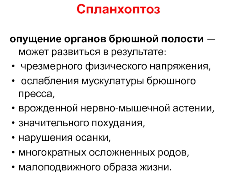 Главные причины приобретенного опущения этого органа могут быть следующими: