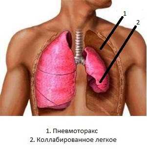 Гемоторакс – это скопление крови между листками плевры. Пневмоторакс – скопление воздуха в грудной клетке без возможности выхода. Оба этих процесса приводят к тому, что легкое поджимается, происходит слипание легочных структур – альвеол, и в итоге прекращается акт дыхания.