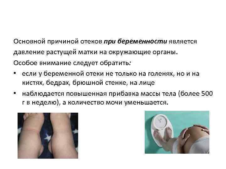 Однако и это еще не все. Помимо гестационных, во время беременности могут развиваться также сердечные и почечные отеки, которые часто проявляются раньше, чем в третьем триместре.