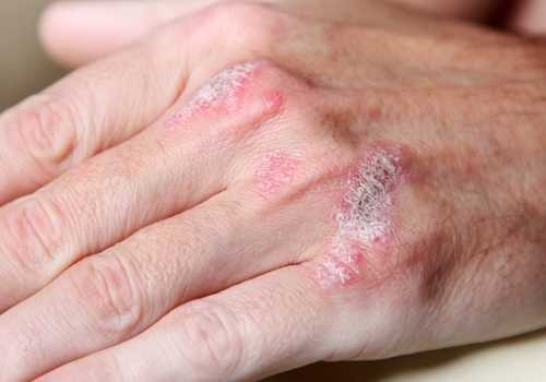 Если сустав пальца на руке опух и болит, а человек до этого уже имел проявления псориаза на коже, то с высокой вероятностью причина болезненности кроется в псориатическом артрите. Часто для болезни характерно опухание сразу всех суставов пальца, в результате чего он похож на сосиску. В отличие от других типов артрита, данное заболевание имеет несимметричный характер, то есть поражения наблюдаются только на одной руке. Если же воспаляются суставы на двух кистях одновременно, то обычно на разных пальцах. Помимо болезненности, отмечается покраснение кожи.