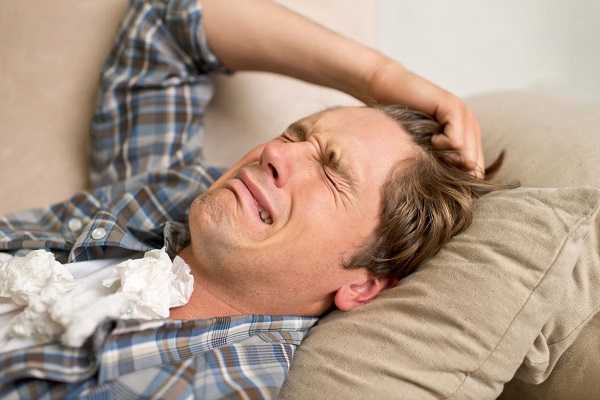 Начальный этап воспаления предстательной железы может напоминать обычный ОРВИ. Отмечается повышение температуры тела, в некоторых случаях, до 38-39 градусов. Мужчина ощущает озноб и головную боль. Чаще всего начальный этап сопровождается болевыми ощущениями в пояснично-крестцовом отделе и позвоночнике, слабостью, быстрой утомляемостью, нарушениями сна. Может появляться раздражительность, агрессивность, частая смена настроения, подавленность.