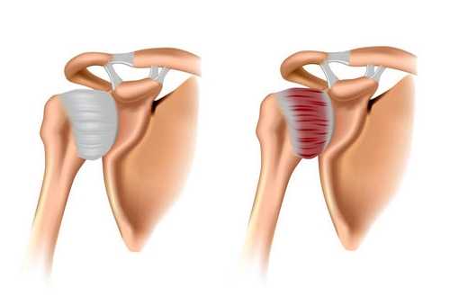 - Частичное повреждение сухожилий и нарушение функций надостной мышцы.