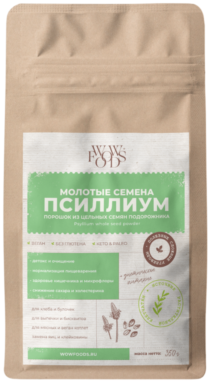 Псиллиум — это лекарственное растение является родственником того самого подорожника, который мы в детстве все прикладывали на раны. Он используется в качестве биологической активной добавки, так как почти на 85% состоит из растворимой клетчатки, которая нормализует микрофлору кишечника, помогает вырабатывать поджелудочной железе инсулин. Порошок псиллиума представляет собой измельченные отруби подорожника блошного.