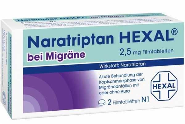 Наратриптан показан при лечении мигрени, мигренозных статусов, менструальной мигрени в составе комплексной терапии. Эффективная дозировка составляет 2,5 мг. Обезболивающий эффект развивается в течение 4 часов.