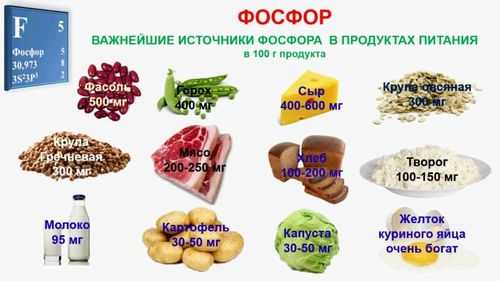 Фосфор получают из икры осетровых, бобовых, сыра, говяжьей печени и яичного желтка. А также он содержится в гречке и овсянке, тыкве и грецких орехах. С фосфором необходимо быть осторожными и не приводить к избытку его в организме. Это ухудшает усвоение кальция, и костная мозоль при переломе будет образовываться медленнее. Так, кость можно заново сломать, даже при незначительной нагрузке.