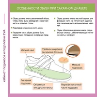 - Обувь должна быть максимально удобной, хорошо сидеть на ноге, нельзя покупать обувь, которую необходимо разнашивать. При значительной деформации стоп потребуется специально изготовленная ортопедическая обувь. Уличную обувь нельзя надевать на босую ногу. Сандалии или босоножки, у которых ремешок проходит между пальцами, противопоказаны. Нельзя ходить босиком, особенно по горячим поверхностям.
