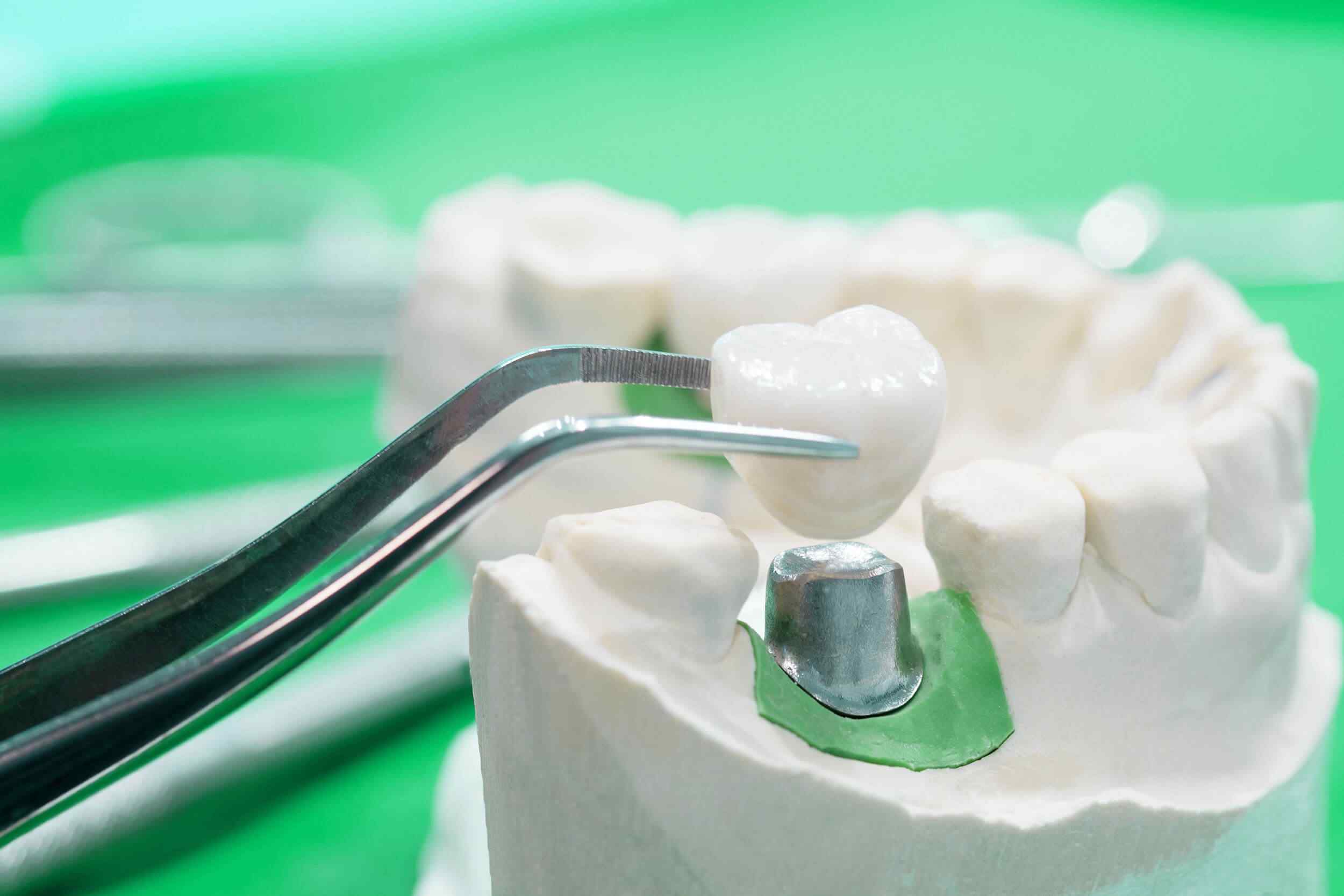 - Одиночные искусственные коронки — имитируют разрушенный зуб по форме и цвету. По материалу изготовления делятся на металлические, металлокерамические и безметалловые (циркониевые и Е-мах). По способу изготовления различают литые и штампованные коронки. Срок службы коронок определяется качеством ухода за ними и видом материала из которого они изготовлены.