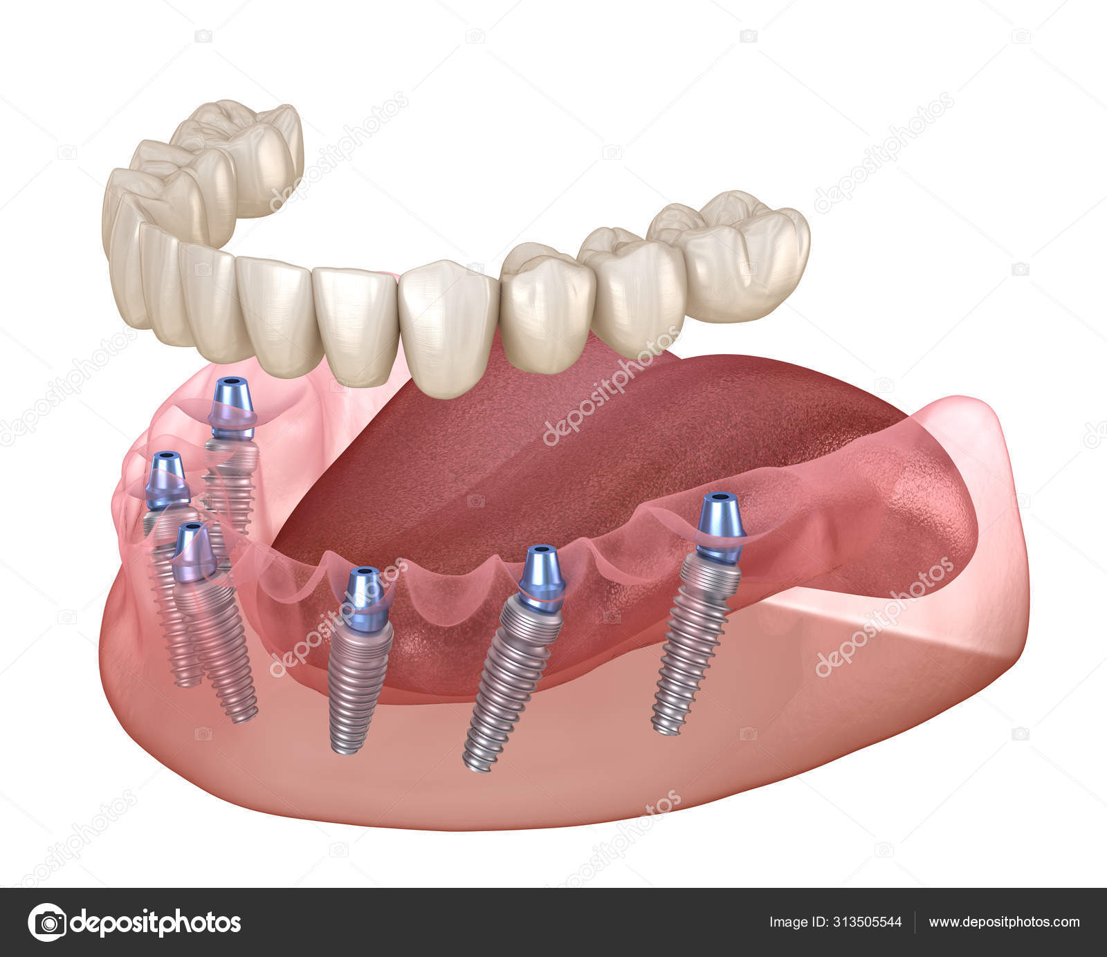 Съемные протезы устанавливаются на импланты, вживленные в костную ткань, на них сначала монтируется переходник – абатмент, а затем надевается сама коронка. Такой тип часто применяется при необходимости заменить несколько зубов.