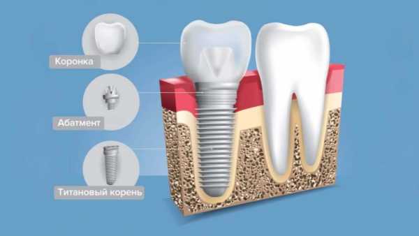 - импланты — искусственные корни и коронка.