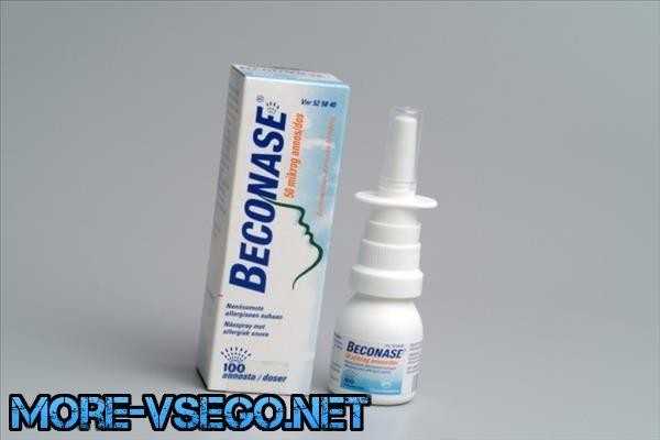 - Беконазе — интраназальный кортикостероидный спрей на основе коры надпочечников. Средство обладает мощным противоаллергическим, противоотечным и противовоспалительным действием. Частично всасывается в кровь. Использовать спрей нужно строго по дозировке. Активно действовать медпрепарат начинает спустя пять дней использования;