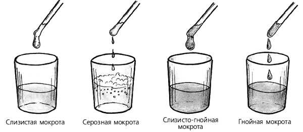 К примеру, при воспалении легких, гриппе и бронхите влажный кашель сопровождается отделением желтой или желто-зеленой мокроты с примесями гноя (консистенция вязкая). При воспалениях носоглотки и других отделов дыхательной системы мокрота может быть жидкой.