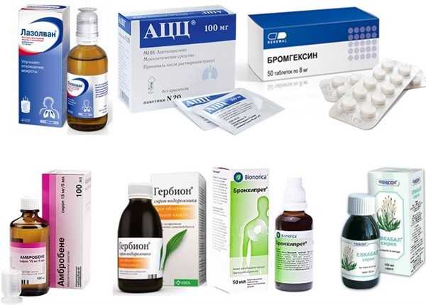 - При густой мокроте с тяжелым ее отхождением, специалисты назначают муколитики, которые способствуют разжижению мокроты.
