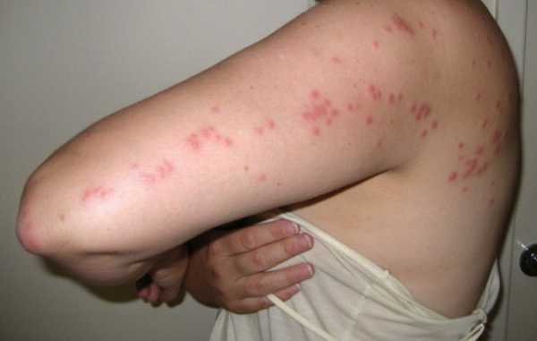 Следы после множественных блошиных укусовУкусы блох у человека могут вызывать различные аллергические реакции — от небольшого зуда, покраснения и отечности до анафилактического шока, в зависимости от индивидуальной чувствительности к укусам. Если ребенка покусали блохи, то аллергические реакции более выражены. Особенно это касается детей до 12 лет.