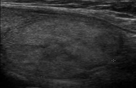 Такие «комбинированные» новообразования, в 15% случаев, являются злокачественного характера. Поскольку внутри образования находится жидкость или желеобразная субстанция (коллоид), оно будет гипоэхогенным при УЗИ.