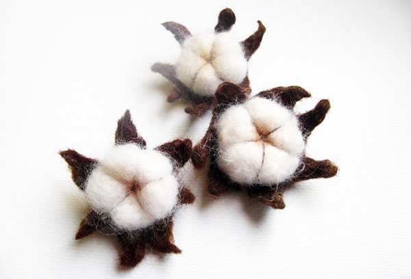 После того, как пройдет период цветения, формируется очень своеобразный плод — круглая или овальная коробочка, в которой зреют семена. При достижении готовности семян коробочка растрескивается и раскрывается, обнажая белую волокнистую массу, в которой и находятся семена хлопчатника. Волокнистая масса — это и есть хлопок, который состоит из двух типов волосков: длинных и пушистых, а также коротких и ворсистых.