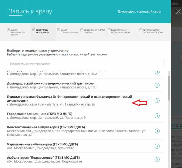 Далее выбираете «Психиатрическая больница №19»