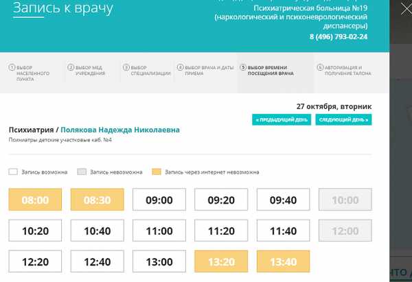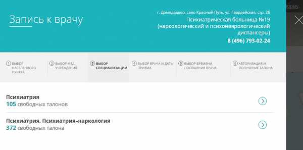Далее выбираете специализацию (психиатрия — детский врач-психиатр, психиатрия-наркология — врачи-психиатры-наркологи), врача, дату и время.